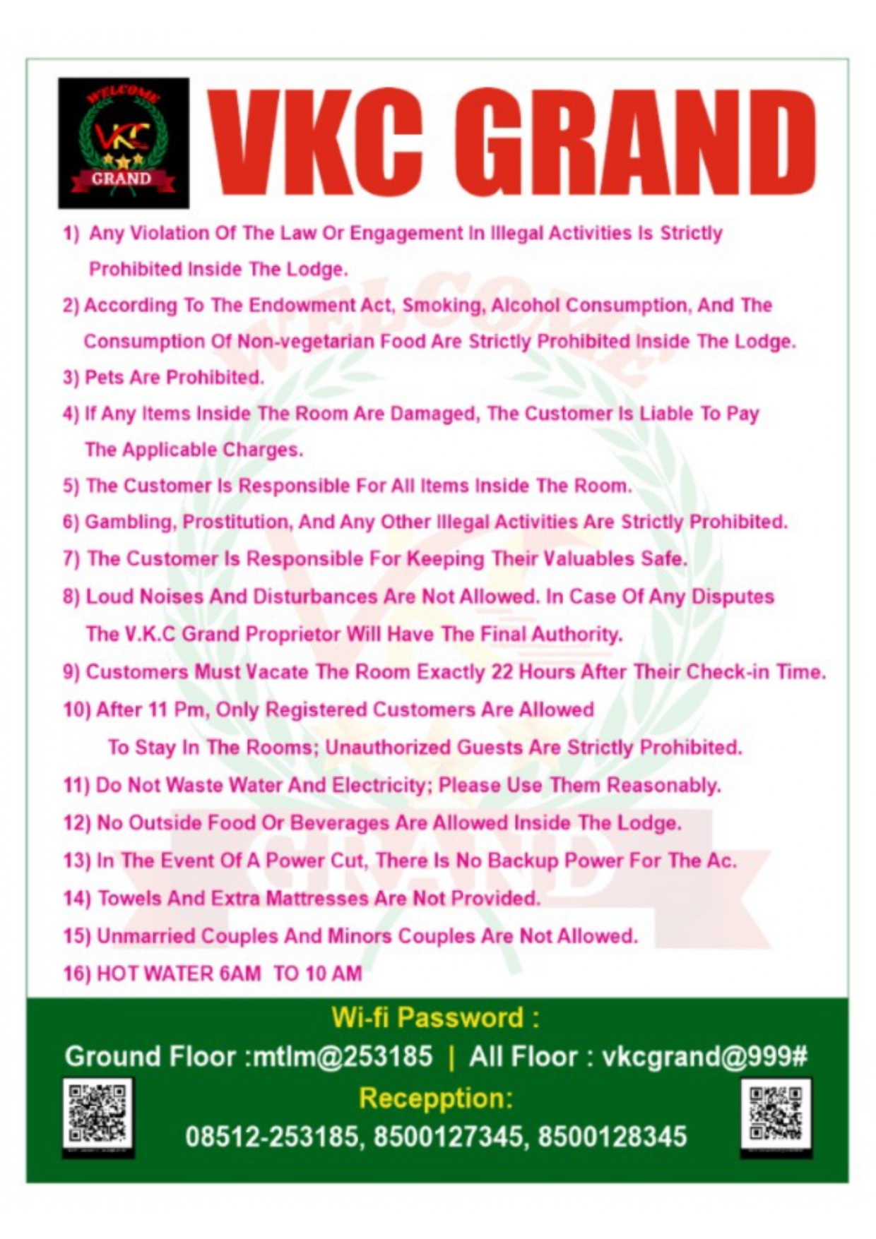 for a spiritual retreat or a short family trip, VKC GRAND LODGE ensures convenience, comfort, and hospitality throughout your stay.